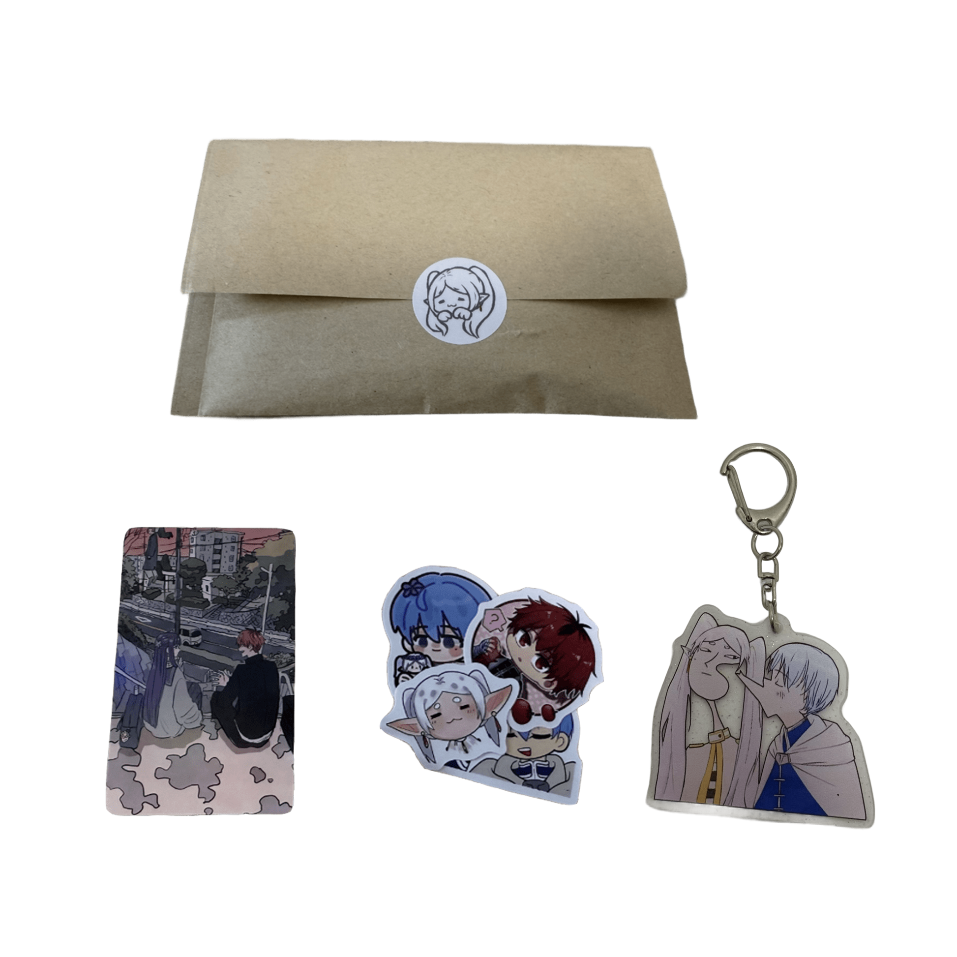 Fun gift for anime lovers – Great for fans who enjoy character humor and want something lighthearted and collectible.Includes 1pc keychain, 1pc LOMO-style cards, and 4pcs anime-themed stickers celebrating Frieren: Beyond Journey’s End.